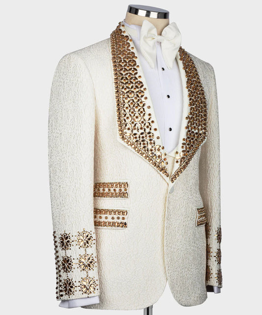 Exclusive Stone Embroidered Cream Tuxedo